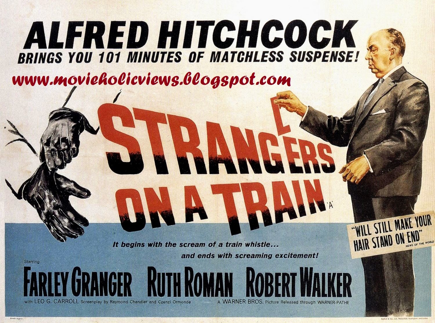 സംവിധാനത്തിന്റെ പ്രത്യേകത മൂലം തന്റെ മിക്ക സിനിമയിലും ത്രില്ലര് സ്വഭാവം കൊണ്ട് വരുന്നതില് മുന്പന്തിയില് ആണ് ആല്ഫ്രെഡ് ഹിച്ച്കോക്ക് .പ്രത്യേകിച്ച് ഒരു മുഖവുര ആവശ്യമില്ലാത്ത സംവിധായക പ്രതിഭയാണ് അദ്ദേഹം.സിനിമകളെ കുറിച്ച് ആഴത്തില് പഠിക്കുന്നവര്ക്ക് ഒരു പഠന വിഷയം ആയിരുന്നു അദ്ദേഹത്തിന്റെ ചിത്രങ്ങള് പലതും.AFI (അമേരിക്കന് ഫിലിം ഇന്സ്റിറ്റ്യൂട്ട്) യുടെ നൂറു വര്ഷത്തെ മികച്ച ത്രില്ലര് സിനിമകളുടെ ലിസ്റ്റില് ആദ്യ സ്ഥാനം അദ്ദേഹം തന്നെ സംവിധാനം ചെയ്ത “സൈക്കോ” എന്ന ചിത്രമാണ്.”Strangers on a Train” ആ ലിസ്റ്റില് ഇടം പിടിച്ചിട്ടുണ്ട്.മുപ്പത്തിരണ്ടാം സ്ഥാനത്താണ് ഈ ചിത്രം.അദ്ദേഹത്തിന്റെ മൂന്നു സിനിമകള് ആദ്യ പത്തില് ഉണ്ടെന്നറിയുമ്പോള് അദ്ദേഹം ചെയ്ത ത്രില്ലര് സിനിമകളുടെ നിലവാരം മനസ്സിലാകും.ആദ്യ നൂറില് തന്നെ അദ്ദേഹത്തിന്റെ ഒട്ടു മിക്ക സിനിമകളും ഇടം പിടിക്കുകയും ചെയ്തിരുന്നു. പൂര്ണത ഉള്ള കൊലപാതകങ്ങള് പലപ്പോഴും ത്രില്ലര് സിനിമകള്ക്ക് വിഷയം ആയി മാറിയിട്ടുണ്ട്.ആല്ഫ്രെഡ് ഹിച്ച്കോക്ക് തന്നെ തന്റെ “Rope” പോലെ ഉള്ള സിനിമകള്ക്ക് ഇത്തരം പ്രമേയങ്ങള് സ്വീകരിച്ചിട്ടും ഉണ്ട്.ഓരോ കൊലപാതകത്തിലും ദൈവം അവശേഷിപ്പിക്കുന്ന തെളിവുകള് പോലും ശ്രദ്ധിക്കപ്പെടാത്ത രീതിയില് ആക്കുവാന് ഒരു പക്ഷേ ഇത്തരം രീതിയില് ആവിഷ്ക്കരിച്ച കൊലപാതകങ്ങള്ക്ക് സാധിക്കും.ശരിക്കും ഇത്തരം കൊലപാതകങ്ങള്ക്ക് മാനസികമായ ഒരു തലം കൂടി ഉണ്ട്.എതിരാളികളുടെ നീക്കങ്ങള് മുന്ക്കൂട്ടി മനസ്സിലാക്കി കളിക്കുന്ന ചെസ്സ് മത്സരം പോലെ ആണ് ഇത്തരം കൊലപാതകങ്ങളും.