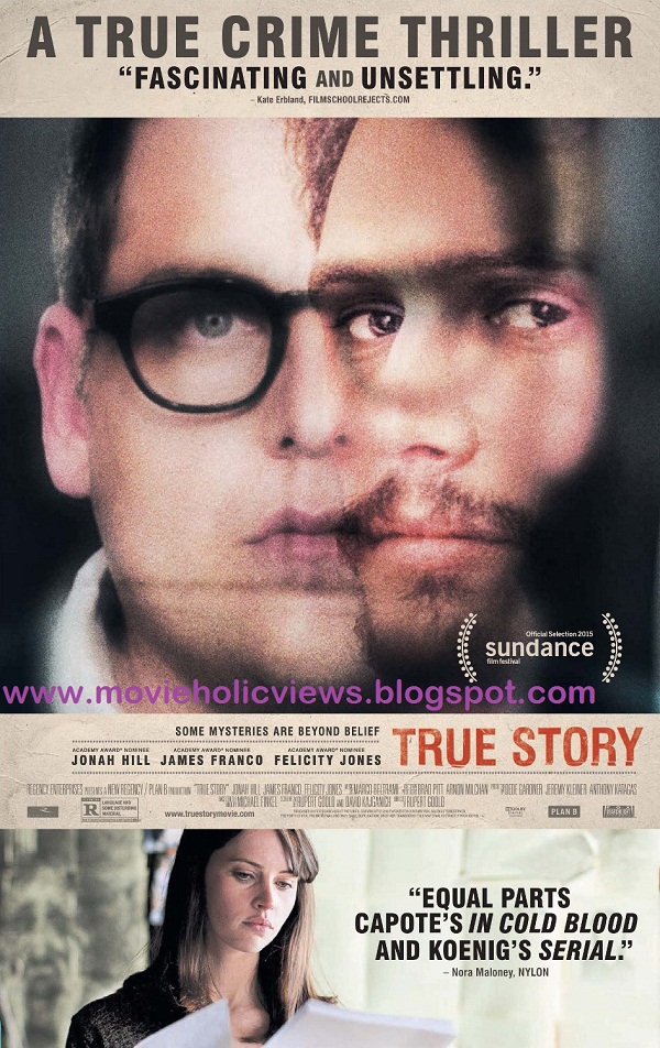 ജെയിംസ് ഫ്രാങ്കോ,ജോനാ ഹില് എന്നിവര് ഒത്തു ചേരുന്ന സിനിമ എന്ന് കേള്ക്കുമ്പോള് ആദ്യം മനസ്സില് വരുന്നത് ഒരു തട്ടുപ്പൊളിപ്പന് തമാശ പടം ആയിരിക്കും,സേത്ത് റോജന് ഒക്കെ ഉള്ള ഒരെണ്ണം.എന്നാല് അവര് രണ്ടു പേരും True Story എന്ന ചിത്രവും ആയി വന്നപ്പോള് പിറന്നത് യഥാര്ത്ഥ സംഭവങ്ങളെ ആസ്പദം ആക്കി നടന്ന ഒരു ചിത്രം ആയിരുന്നു.ഒരു പത്രപ്രവര്ത്തകനും തന്റെ ഭാര്യയേയും മക്കളെയും കൊന്നൊടുക്കിയ ഒരു കുറ്റവാളിയും തമ്മില് ഉള്ള ബന്ധം ആയിരുന്നു ഈ ചിത്രം.ഈ ചിത്രത്തിന് നല്ല വശവും ഉണ്ട് ചീത്ത വശവും ഉണ്ട്.ആദ്യം നല്ല വശത്തെ കുറിച്ച് പറയാം.