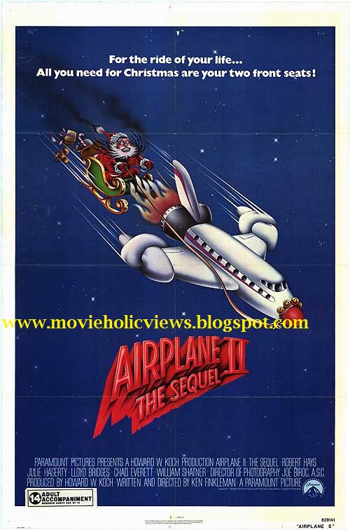 Airplane II:The Sequel ആദ്യ ഭാഗം റിലീസ് ആയതിനു രണ്ടു വര്ഷം ശേഷം റിലീസ് ആയി.ആദ്യ ഭാഗത്തിലെ സംവിധായക ത്രയം ഈ ചിത്രത്തില് ഉണ്ടായിരുന്നില്ല.പകരം രണ്ടാം ഭാഗത്തിന് പുതിയ സംവിധായകന് ആയിരുന്നു.ആദ്യ ഭാഗത്തിലെ കഥാപാത്രങ്ങള് അവരുടെ വേഷങ്ങള് നിലനിര്ത്തുകയും ചെയ്തു.ഇത്തവണ ഒരു സാധാരണ ഫ്ലൈറ്റിന്റെ യാത്രയില് നിന്നും മാറി യാത്ര ചന്ദ്രനിലേക്ക് ആണ്.ചിത്രത്തിന്റെ തുടക്കം Star Wars മോഡലില് എന്തോ കഥ പറഞ്ഞു തുടങ്ങുന്ന ചിത്രം ഭാവിയില് സംഭവിക്കാന് സാധ്യത ഉള്ള ടെക്നോളജിയുടെ കുതിച്ചു ചാട്ടത്തില് നടക്കുന്ന സംഭവം ആയാണ് അവതരിപ്പിക്കുന്നത്.