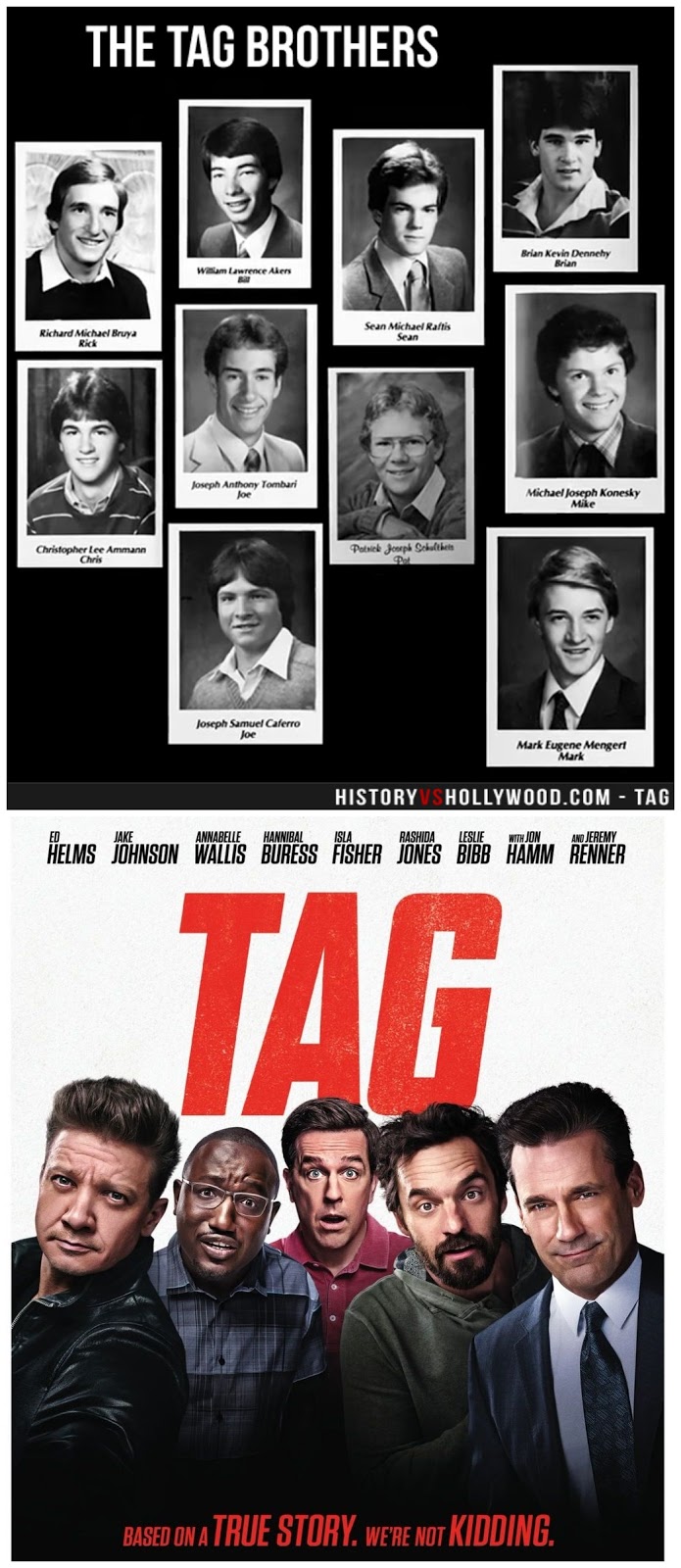 ‘Wall Street Journal’ ല് പ്രസിദ്ധീകരിച്ച സമാനമായ ഒരു യഥാര്ത്ഥ സംഭവത്തിന്റെ സിനിമാവിഷ്ക്കാരം ആണ് ടാഗ്.സൌഹൃദങ്ങള്ക്ക് മറ്റൊരു മുഖം നല്കിയ ചിത്രം നല്ലൊരു Entertainer ആണ്.അതിലുപരി നല്ലൊരു ഫീല് ഗുഡ് തമാശ ചിത്രവും ആണ്.ഈ 5 സുഹൃത്തുക്കളും പ്രേക്ഷകനെ ചിരിപ്പിക്കും.കുറച്ചൊക്കെ നൊസ്റ്റു അടിപ്പിക്കും.കാരണം ബാല്യത്തിലെ നിഷ്കളങ്കതയില് നിന്നും മുതിര്ന്നപ്പോള് നഷ്ടമായ പലതിന്റെയും മറ്റൊരു തരത്തില് ഉള്ള ആവിഷ്ക്കാരം ആണ് ചിത്രം.