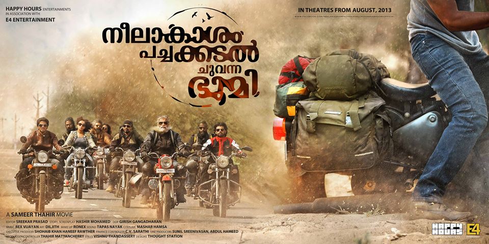 NEELAAKASHAM PACHAKKADAL CHUVANNA BHOOMI (2013,MALAYALAM), | Romance | Adventure | Drama ,Dir:- Samir Tahir,*ing:- Dulquer Salman,Sunny Wayne,Surja Bala